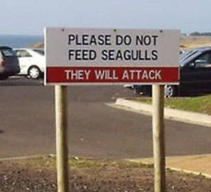 Seagull’s are from the Devil himself. I have reason to believe that they do most of his shitty work! {yes! pun intended} If you have lived or do live anywhere near these dreaded things, just move. Or in fact, just write this down under your list of PRO’s for these nasty, hateful doers.
